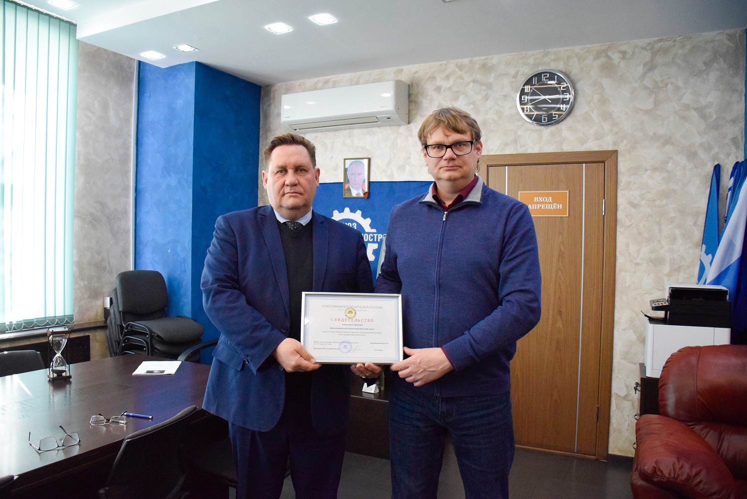 Свидетельство Союза машиностроителей России вручил первый заместитель председателя Свердловского регионального отделения СоюзМаш, руководитель представительства Госкорпорации «Ростех» в Свердловской области Павел Лыжин.