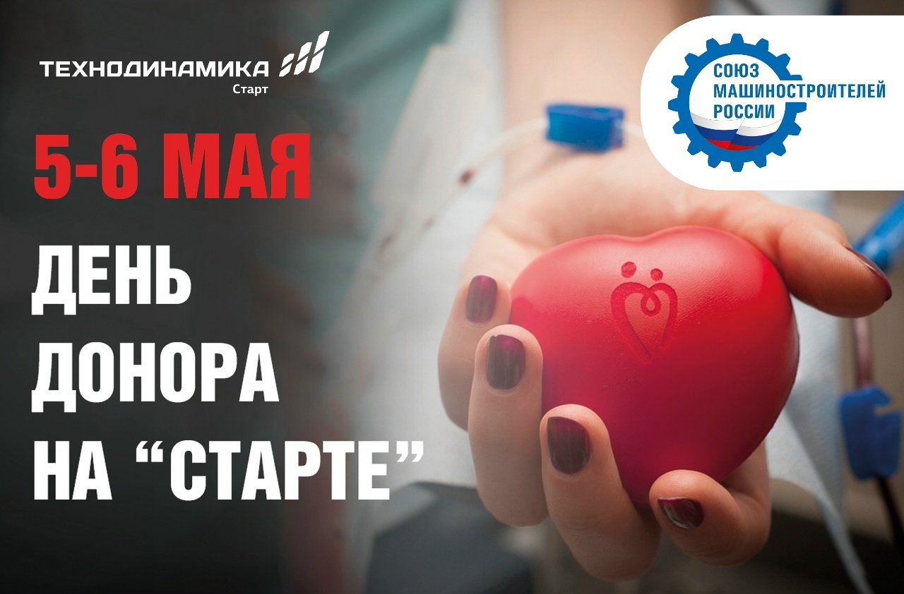В начале мая на НПП «Старт» им. А.И. Яскина при поддержке Свердловского отделения Союза машиностроителей России пройдет традиционная благотворительная акция – корпоративный день донора. Мероприятие состоится 5 и 6 мая. В первый день сдать кровь можно будет в здравпункте предприятия, а во второй – на площадке ФГБУЗ «Станция переливания крови ФМБА России в Екатеринбурге».